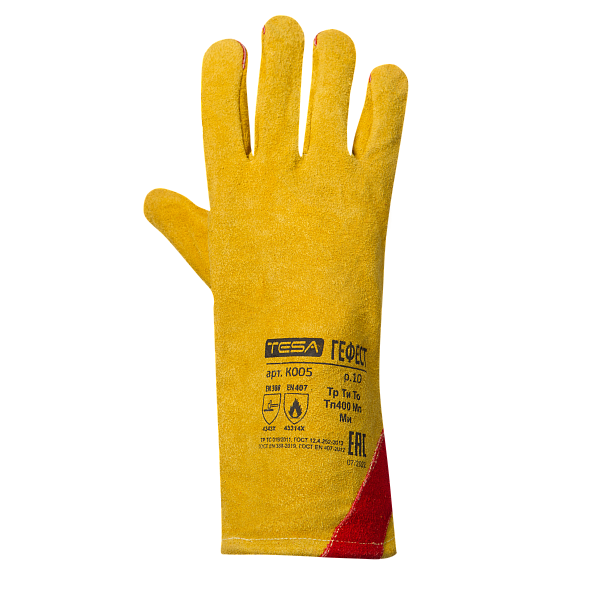 Перчатки-краги TESA ГЕФЕСТ арт. К005, спилок 1,2мм, 350мм, желтые (10)