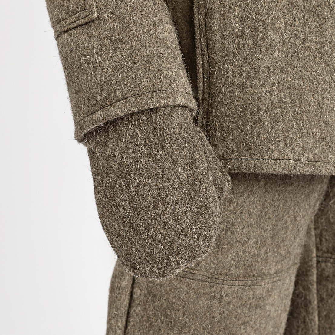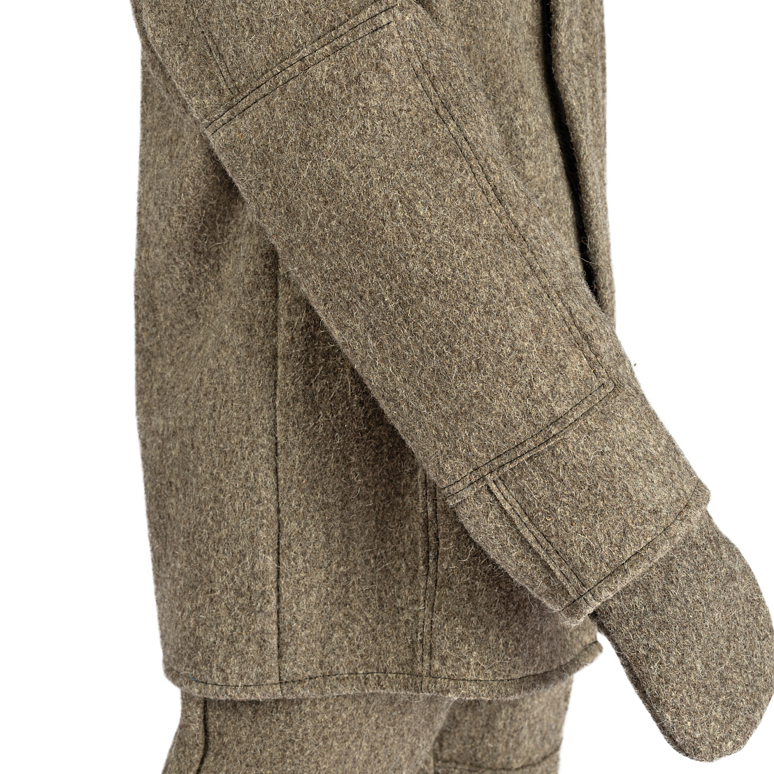 Защитные накладки из сукна расположены на куртке и брюках в области локтей и колен.