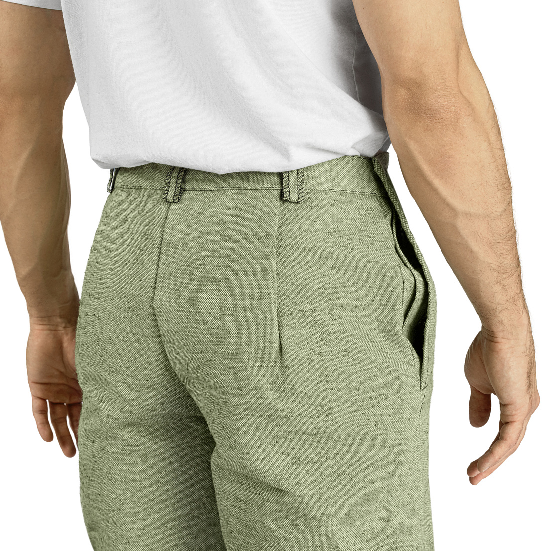 Брюки прямого кроя, выполняются с застежкой на пуговицы в боковых швах.
