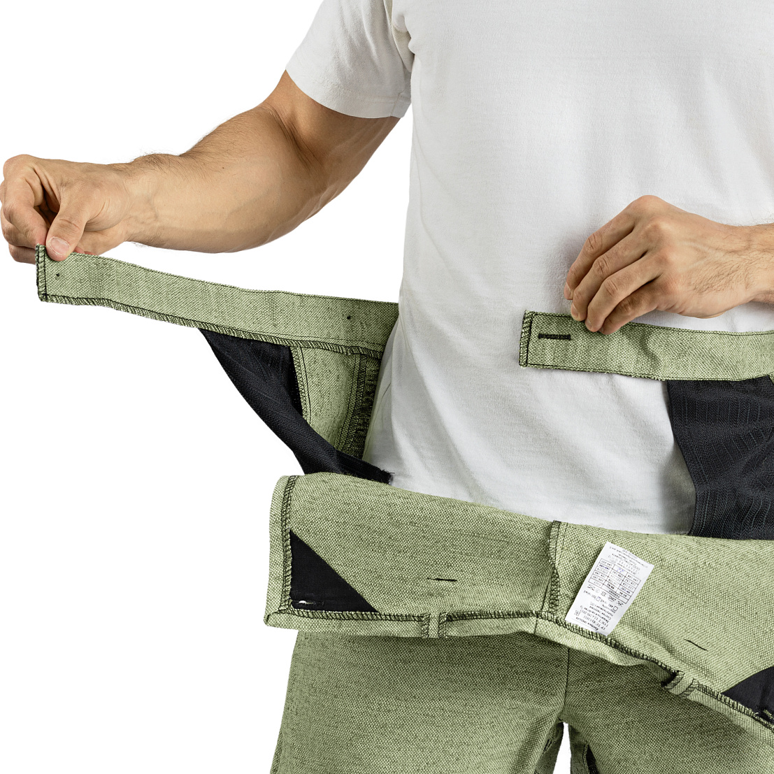 В шаговом шве брюк расположены вентиляционные отверстия.