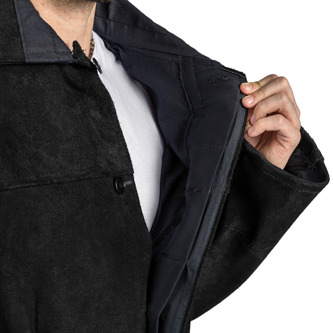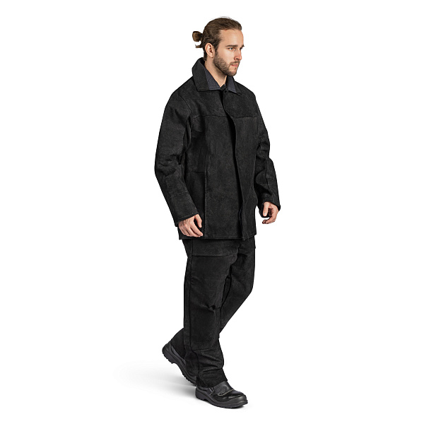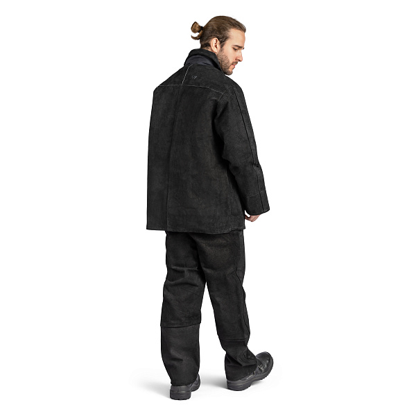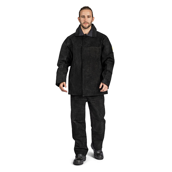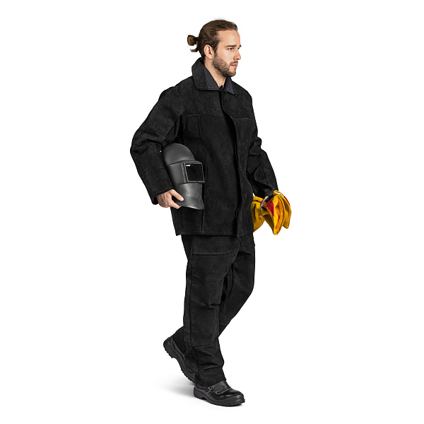 Костюм сварщика, к/бр, цельноспилковый, 2 кл.защиты, черный (104-108/158-164)