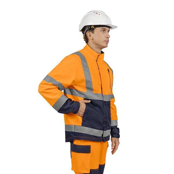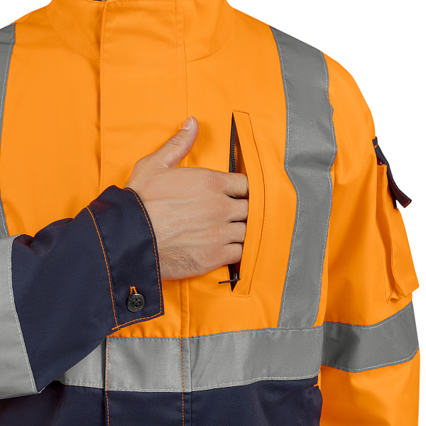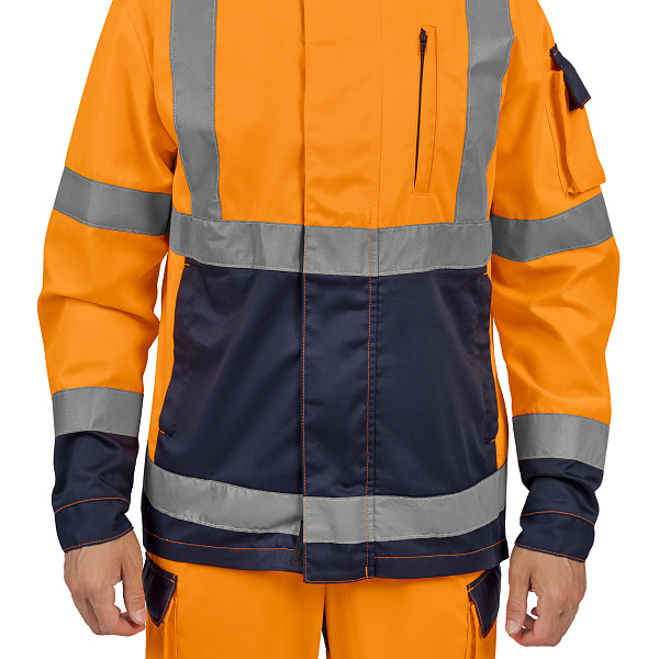Костюм сигнальный МастВижн 3 (куртка/брюки) флуоресцентный оранжевый/т-синий, тк.смесовая, муж. (104-108/158-164)