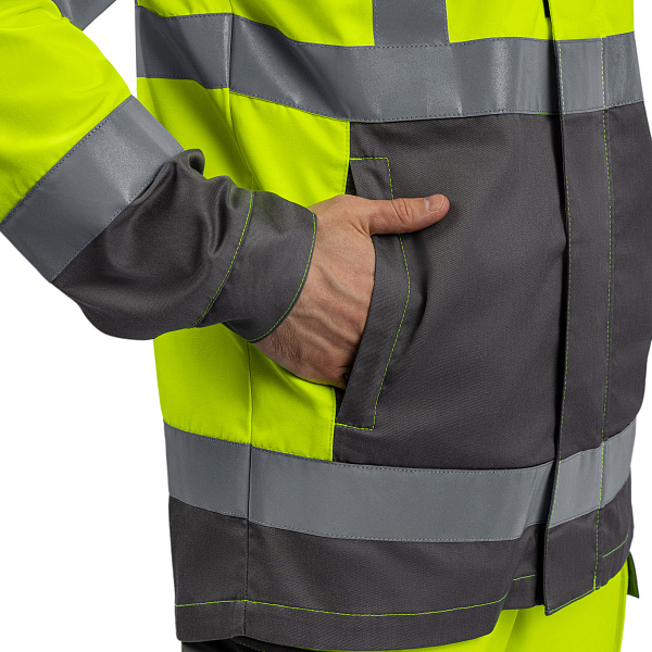 Костюм сигнальный МастВижн 3 (куртка/брюки) флуоресцентный желтый/серый, тк.смесовая, муж. (104-108/158-164)