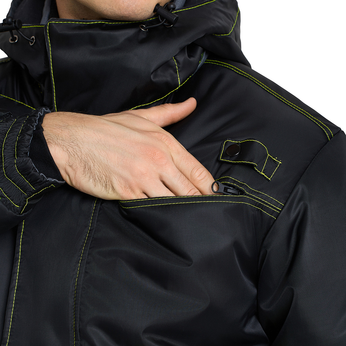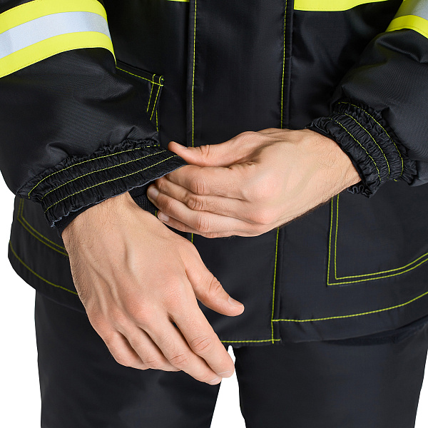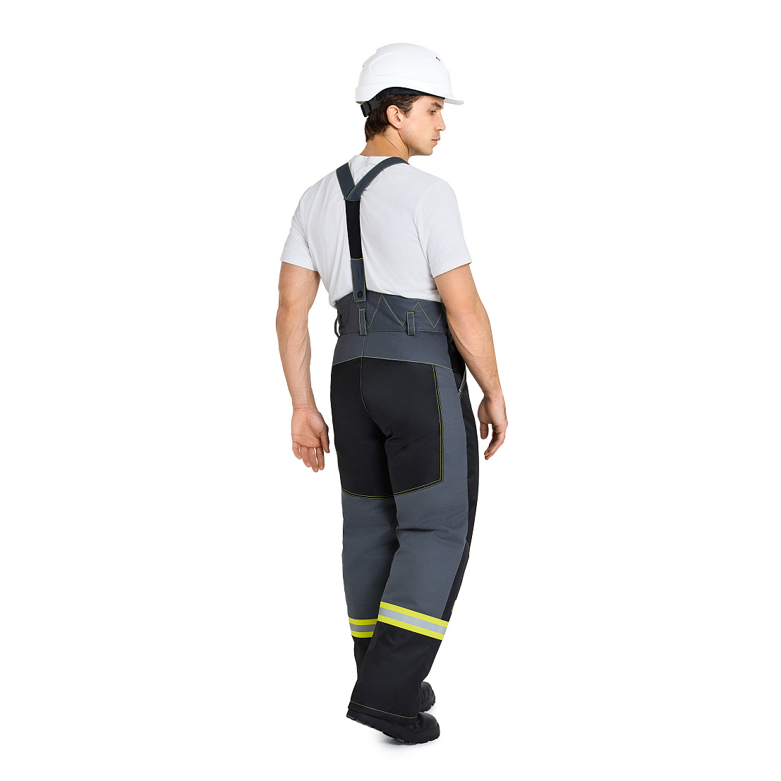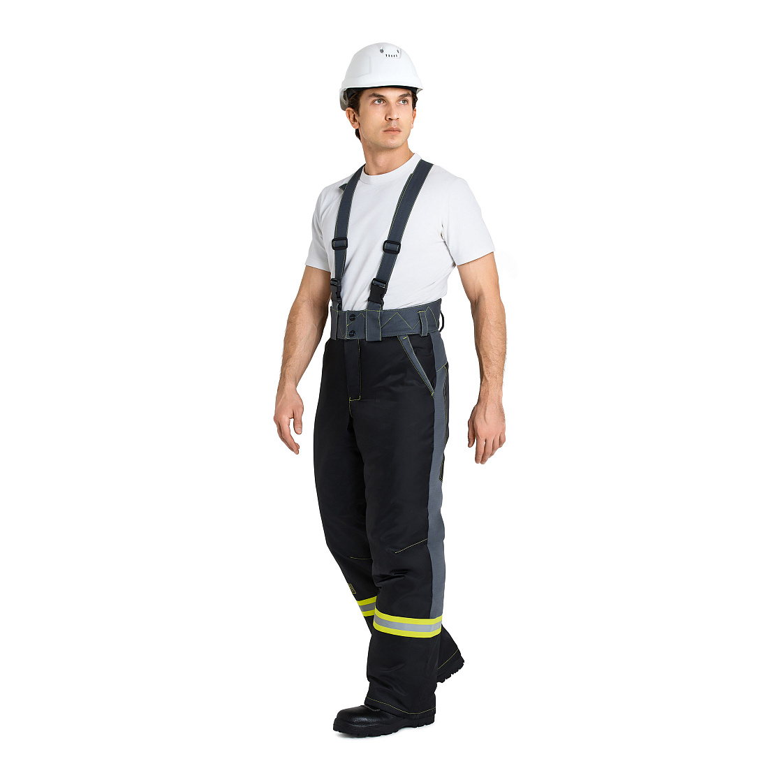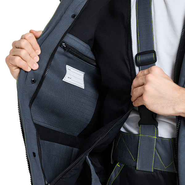 Изделие предназначено для защиты от пониженных температур воздуха при эксплуатации в IV и «особом» климатических поясах, 2-го кл. защиты от сырой нефти и нефтепродуктов, кратковременного воздействия открытого пламени и статического электричества. Костюм серо-черного цвета состоит из куртки и брюк, изготовленных из легкой огнестойкой антистатической ткани с нефтемасловодоотталкивающей, кислотостойкой (К50) отделкой и высокими разрывными, износостойкими показателями. Накладки на куртке и брюках обеспечивают защиту от загрязнения нефтью и нефтепродуктами, изготовлены из огнестойкой антистатической ткани с PU покрытием. Капюшон с защитной накладкой. Двухцветные серо-лимонные, огнестойкие, световозвращающие полосы придают изделию оригинальный внешний вид